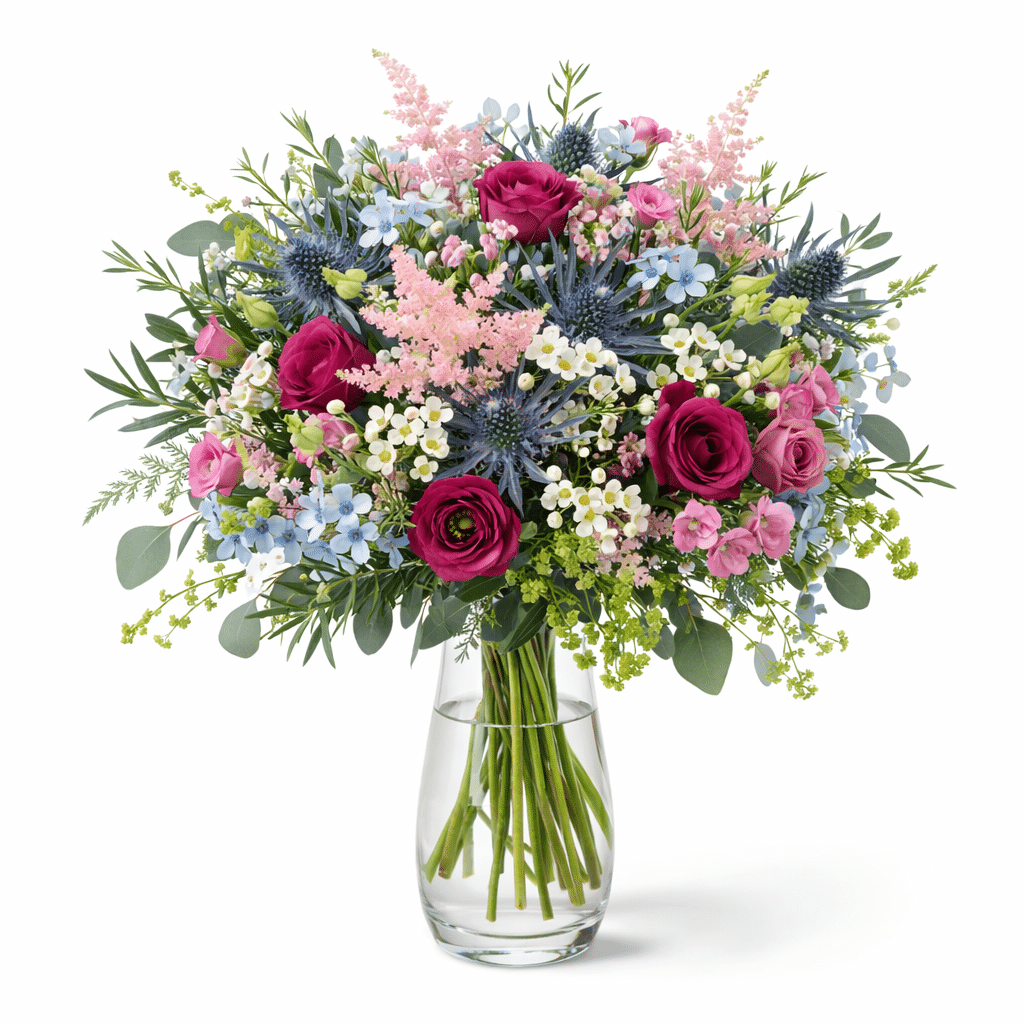 Bunter Strauß aus zarten Blüten wie von der Wiese gepflückt